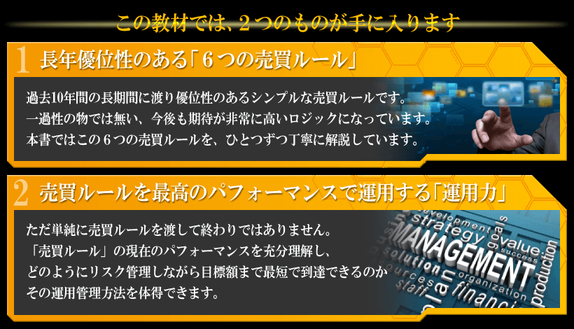 この教材内容は現在も使用している売買ルールと運用方法ですが