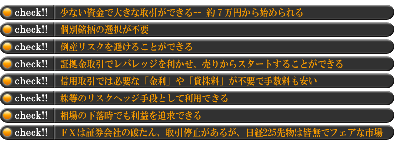 日経225先物取引は手数料が50円程度(mini1枚あたり)と経費も安く抑えられます。
