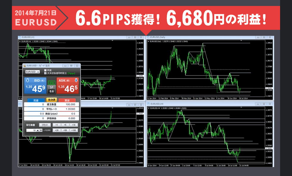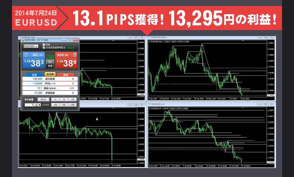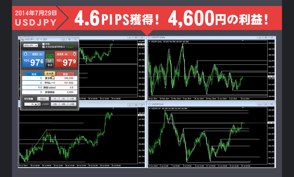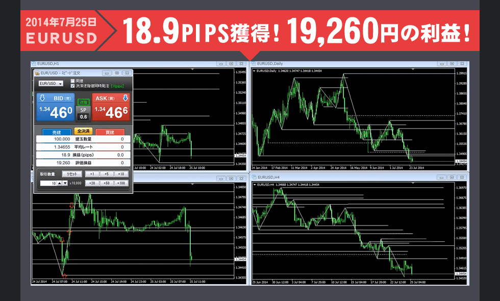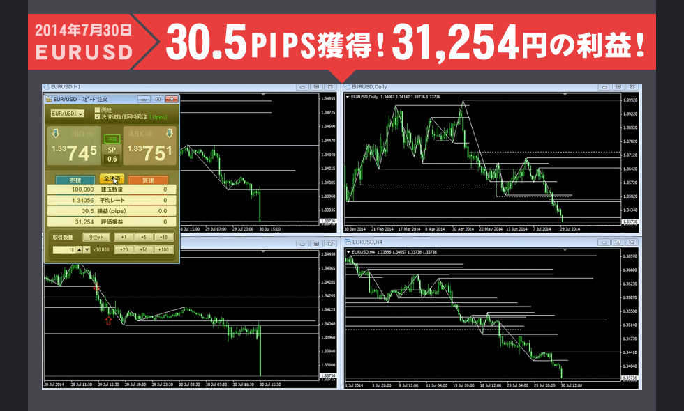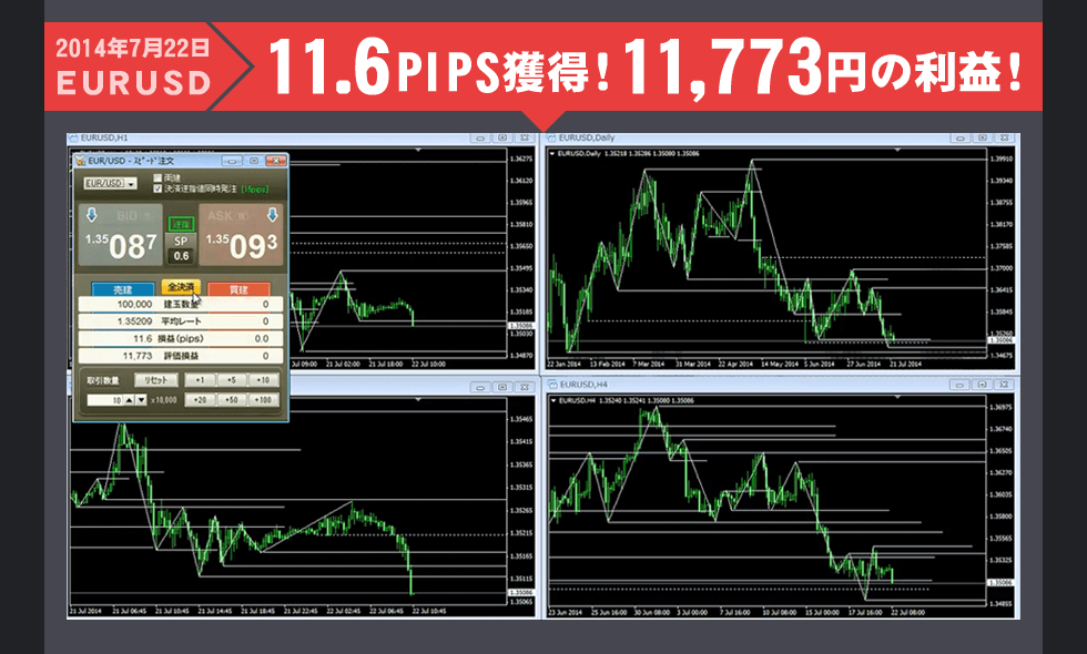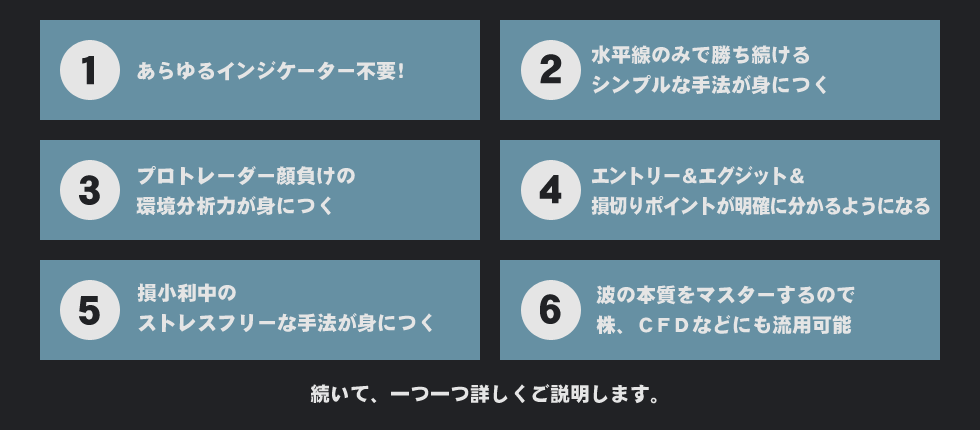 しかも、私が教えたのは「ダウ理論を駆使した水平線の読み方」、これだけです。