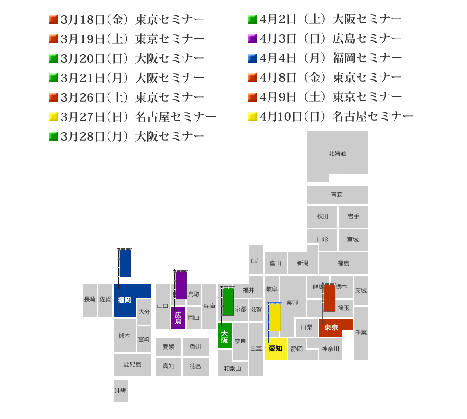 【注意事項】上記参加フォームより参加登録後、セミナー本申し込みが完了となります。登録完了後に、自動返信メールにてセミナー会場等の詳細をお送りさせていただきます。お申し込み後に必ずご確認ください。セミナー登録後にキャンセルされる場合は、必ずご連絡ください。(連絡先は登録後メールに記載)無断欠席の場合は必ず5000円のキャンセル代金を請求させて頂きます。予めご了承ください。