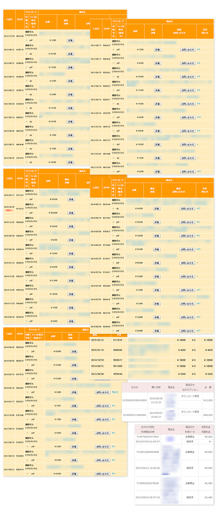 当時、僕が購入してきた塾や商材の履歴が残っていたので、