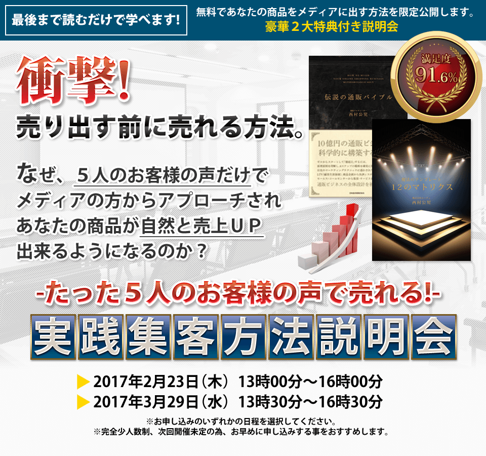 たった5人のお客さまの声で売れる!「実践集客方法説明会」では、