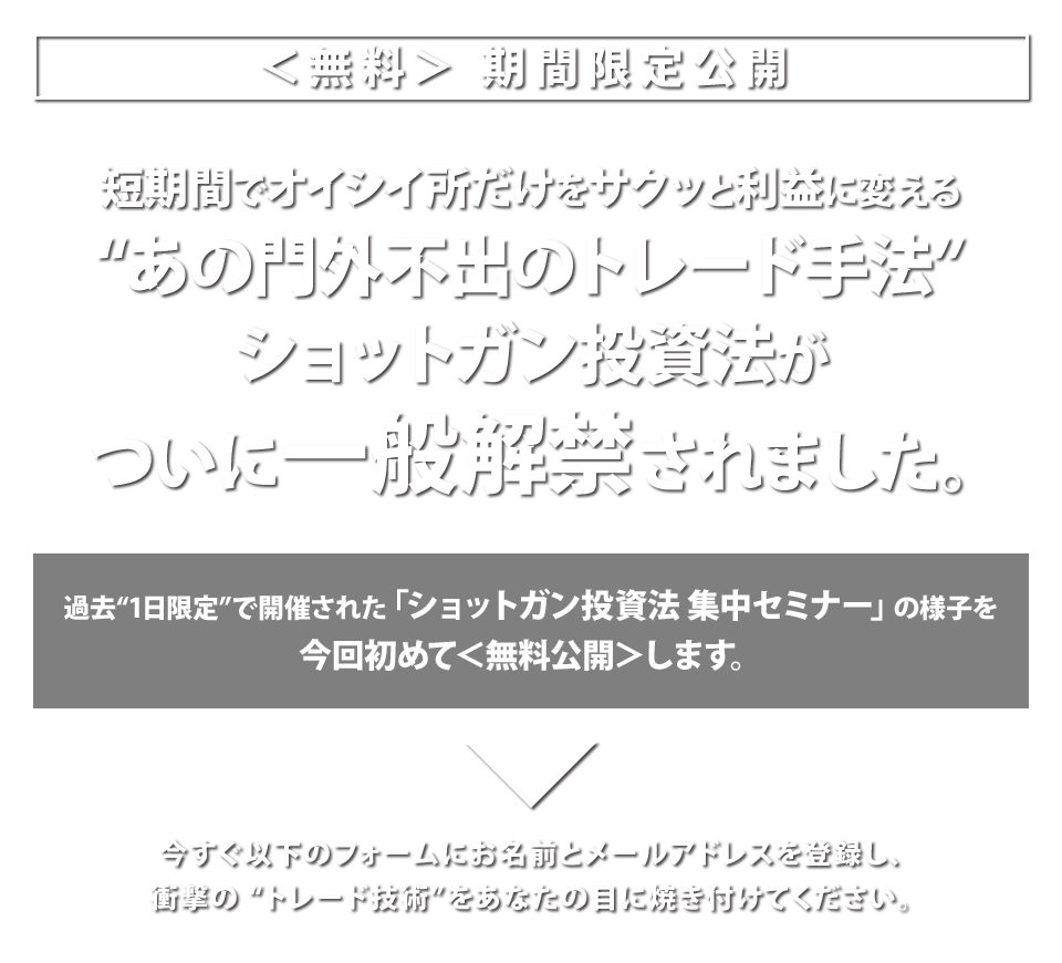 今回初めて無料公開させていただく「ショットガン投資法」は、