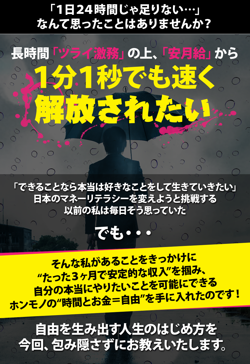 私の力で多くの人を"お金という呪縛から解放"させたいと考えておりました。