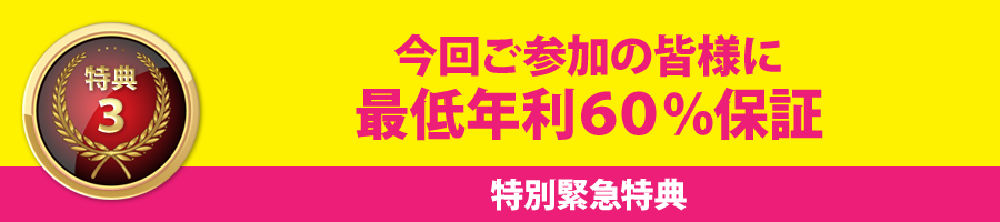 今回ご参加の皆様に最低年利60%保証をお付けします。