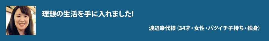 弁護士費用も作る事ができて、子供を育てていけるだけの金銭的自信もつき、養育費と慰謝料もしっかりとった上で見事親権も確保。安心できる生活を手に入れることができました!