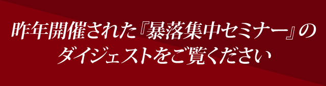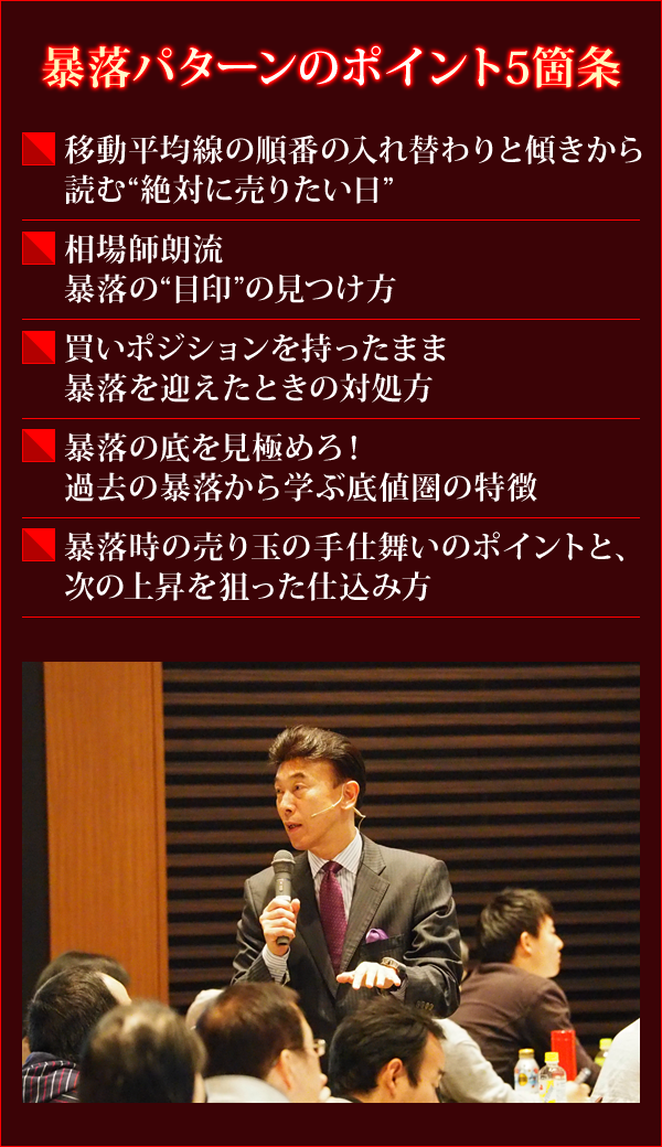今回の『暴落集中セミナー 2017』で、"暴落の局面の達人"になれば大きな武器になるはずです。