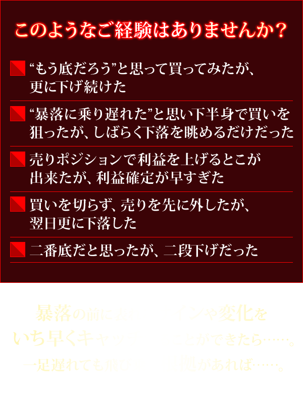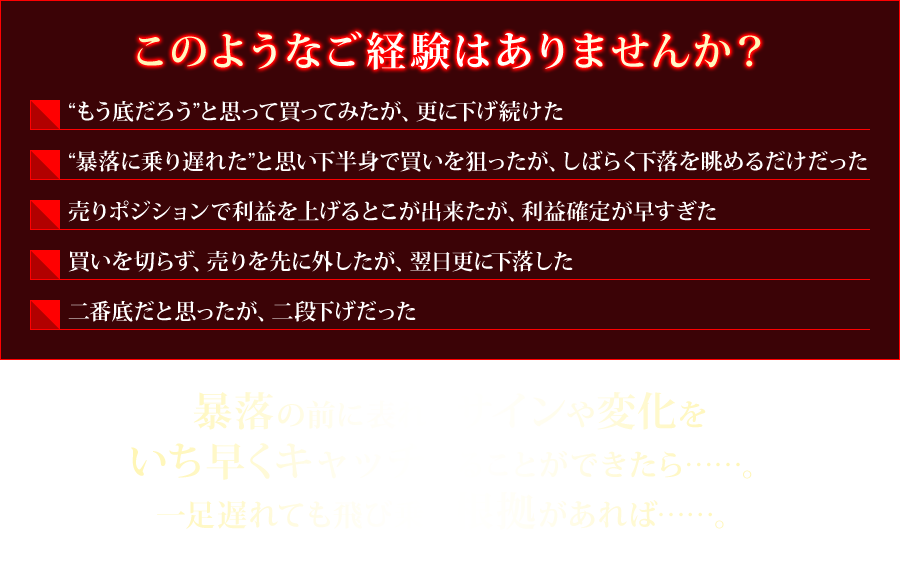 そこで、皆様に"目前に迫る次の暴落"で大きな利益を得ていただくため