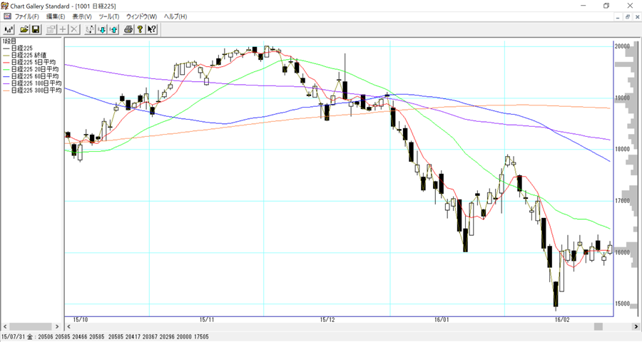 2015年12月以降続いた暴落相場は、説明が難しいと言われている。利上げとドル高による輸出減速で米国の減速感、上海株式市場、WTI原油価格の急落。結果的な円高進行。年初から日経平均を始め東京市場は下落を続け、大発会から5日続落という歴史上初めての事態に広がっていった。