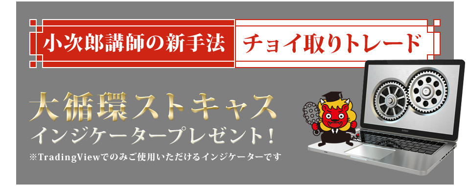 わたしが研究に研究を重ねて開発した小次郎講師流「大循環ストキャス」を使用します。