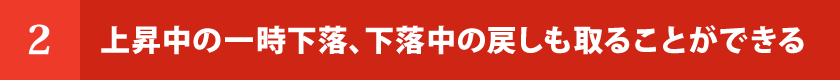 では、2つ目の「上昇中の一時下落、下落中の戻しも取ること出来る」について