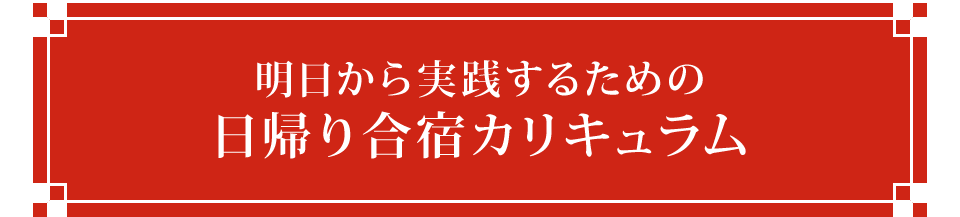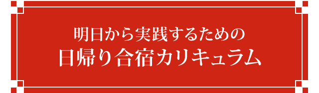 この日帰り合宿では、この「ダマシ」を見極める方法を体得していただくためのプログラムを用意しております。