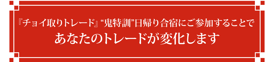 | 11:00~12:30 | 第1部「チョイ取りトレード」理解力向上 |