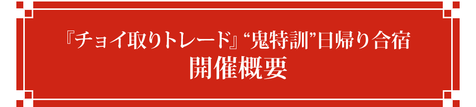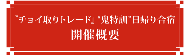 | 13:30~16:30 | 第2部「チョイ取りトレード」実践力向上 |