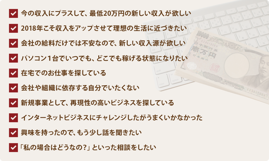 インターネットビジネス未経験者、パソコンの操作が全く苦手な方、