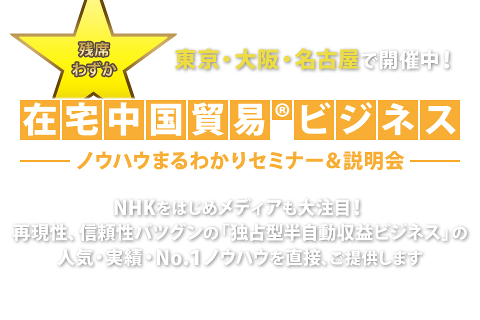 『独占型半自動収益ビジネス』は、「在宅中国貿易ビジネス」と呼ばれ、