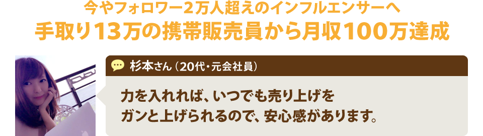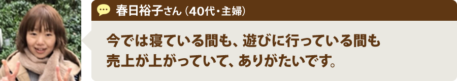 その甲斐あって、3ヶ月目には月商100万を超え、仕事をすればするほど報酬となって成果が自分にかえってくるので、とてもやりがいを感じます。