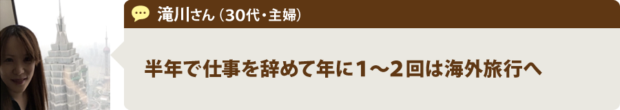 はじめて半年で、今までの人生ががらりと変わり、仕事も辞めて、年に1~2回海外旅行に行っています。