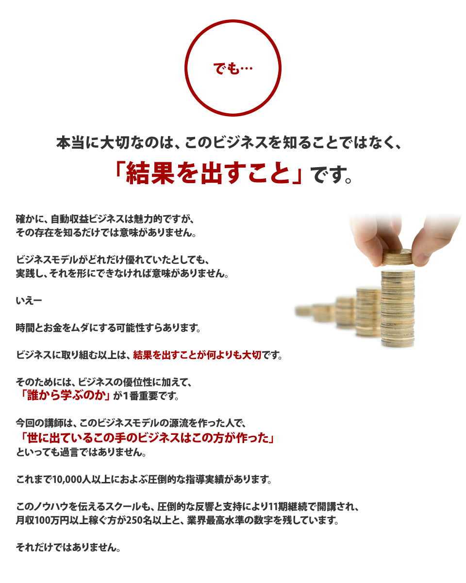 確かに、自動収益ビジネスは魅力的ですが、その存在を知るだけでは意味がありません。