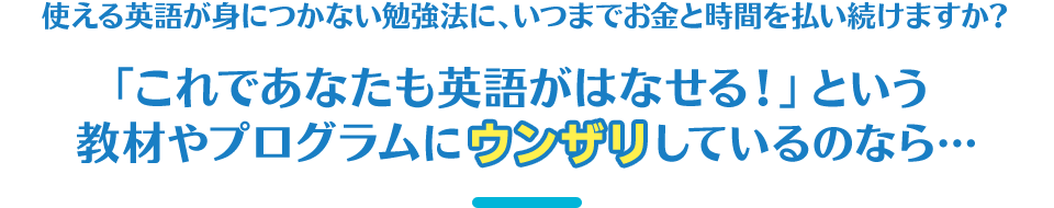 センター試験英語を10分で回答するなど大学受験レベルでトップレベルの実力が身につくも、 実践の場面では「聞けない」「話せない」使えない英語であることに愕然とする。