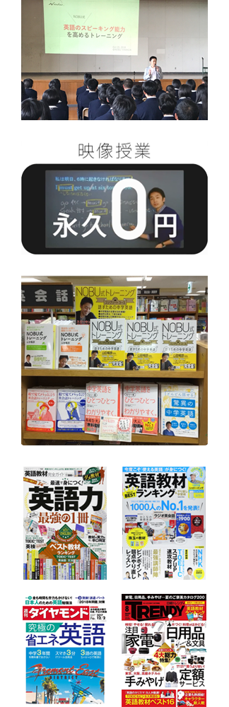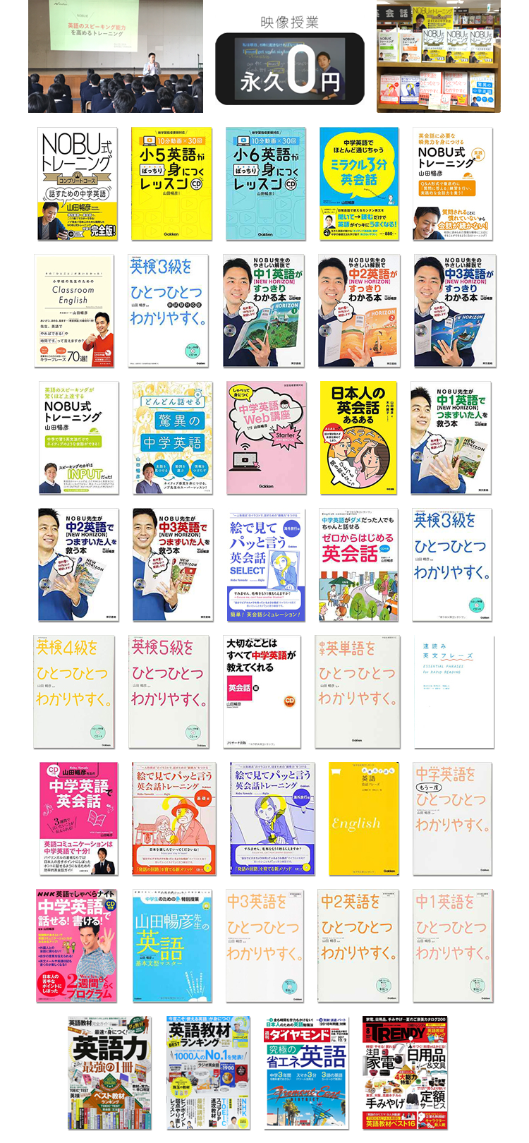 そのほか、『絵で見てパッと言う英会話トレーニング』(学研) や『NOBU式トレーニング』(IBC)シリーズなど、大ヒットの英会話本も多数執筆。