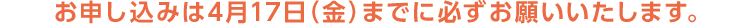 4月17日を過ぎますと、本サイトからお申し込みはできなくなり、