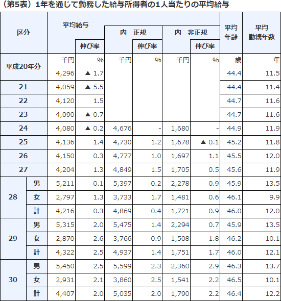 2019年9月、国税庁より平均年収が約441万円だと発表されました。