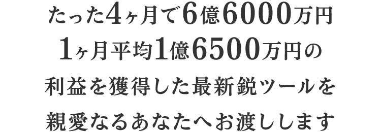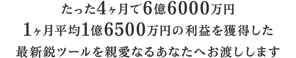 たった4ヶ月で6億6,000万円の利益を獲得した最新鋭"神"ツール。
