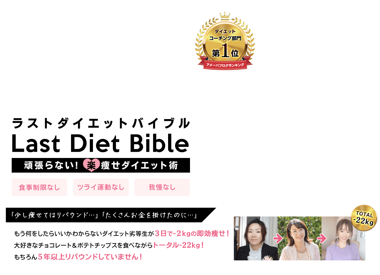 「ラストダイエットバイブル」でダイエットに悩まない人生を手に入れましょう。