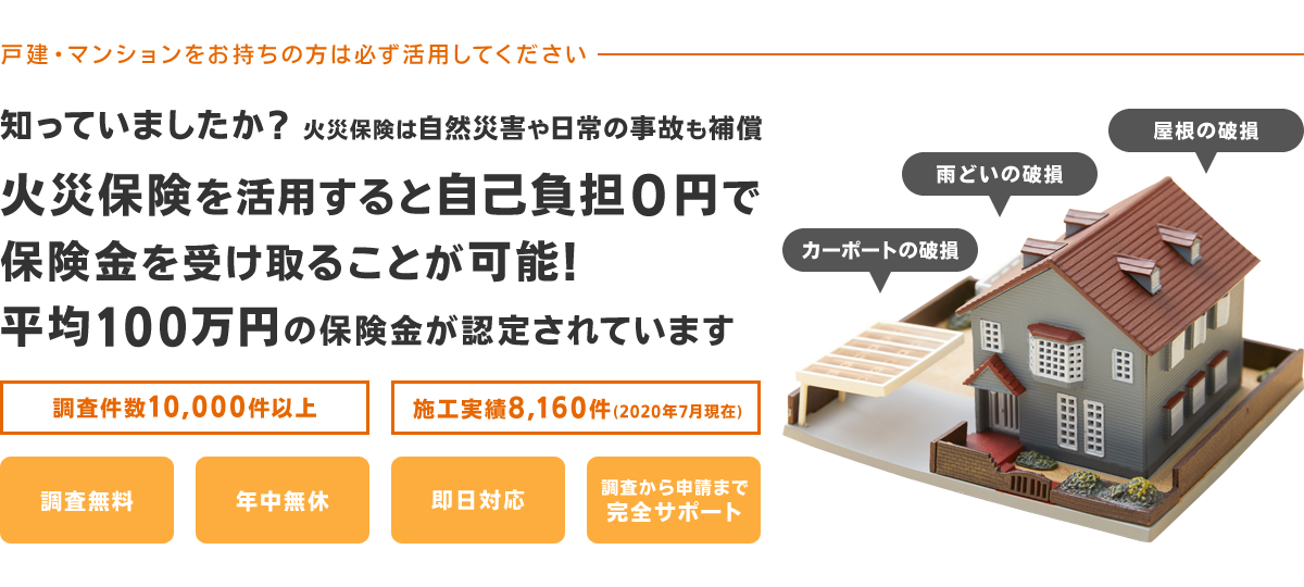 などなどの複雑な火災保険申請を完全サポートいたします。