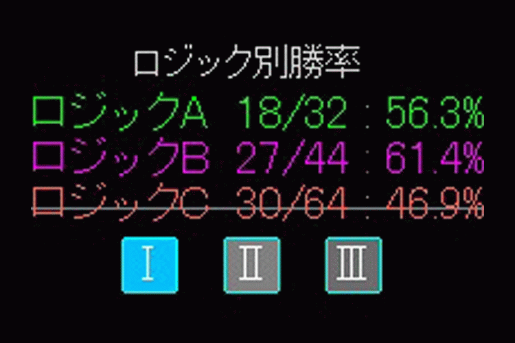 「ワイルドカードシステム」は、ロジック別の勝率を表示します。