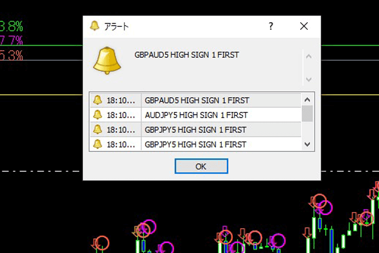 一日中パソコンの前にいなくても、シグナルが表示された途端にアラートを鳴らします。勝率90%以上に設定すれば、手堅いシグナルを逃しません。