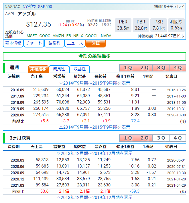 また、予想データが整備されていないので、当初はPERなども実績ベースとなります。この点も早急に解決する予定です。