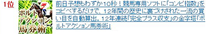 「コンピ指数ピンク推奨馬攻略ノウハウ専用ソフト【スーパートマホーク】」をおすすめします。