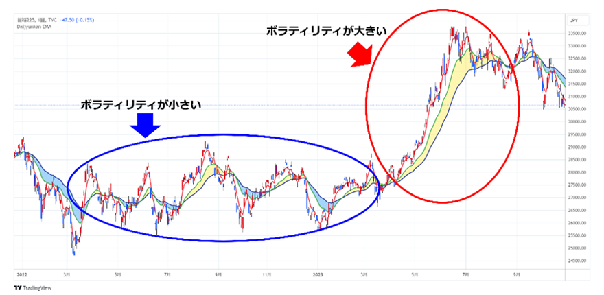 - 特徴5ボラティリティの高まりや収束がわかる