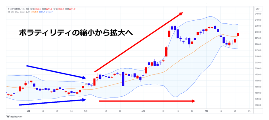 ボリンジャーバンドは相場の変動が始まる兆候はわかりますが、