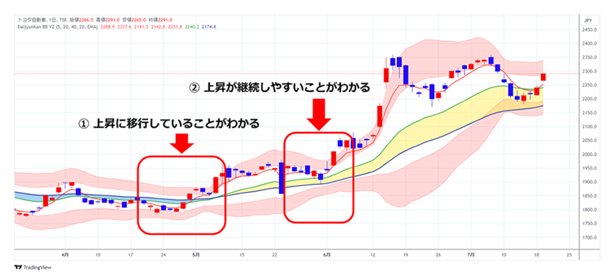 - 特徴2トレンドの方向性がわかる