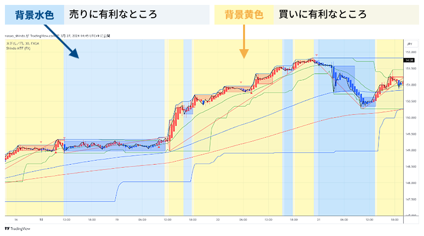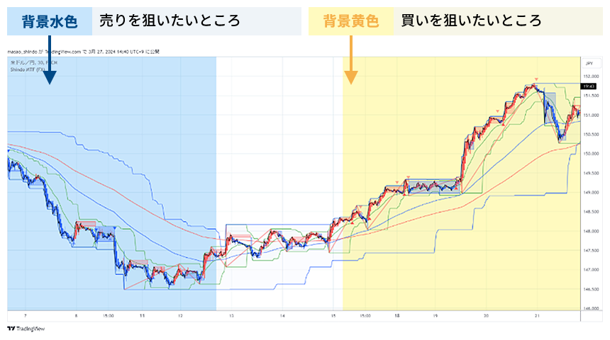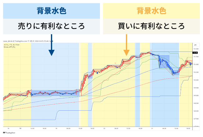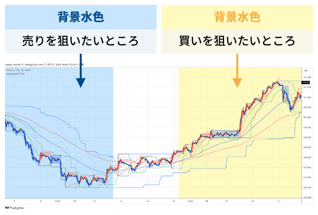 チャートの背景を長期的なトレンド、短期的な動きなど、あなたのトレードスタイルに合わせて設定できます。